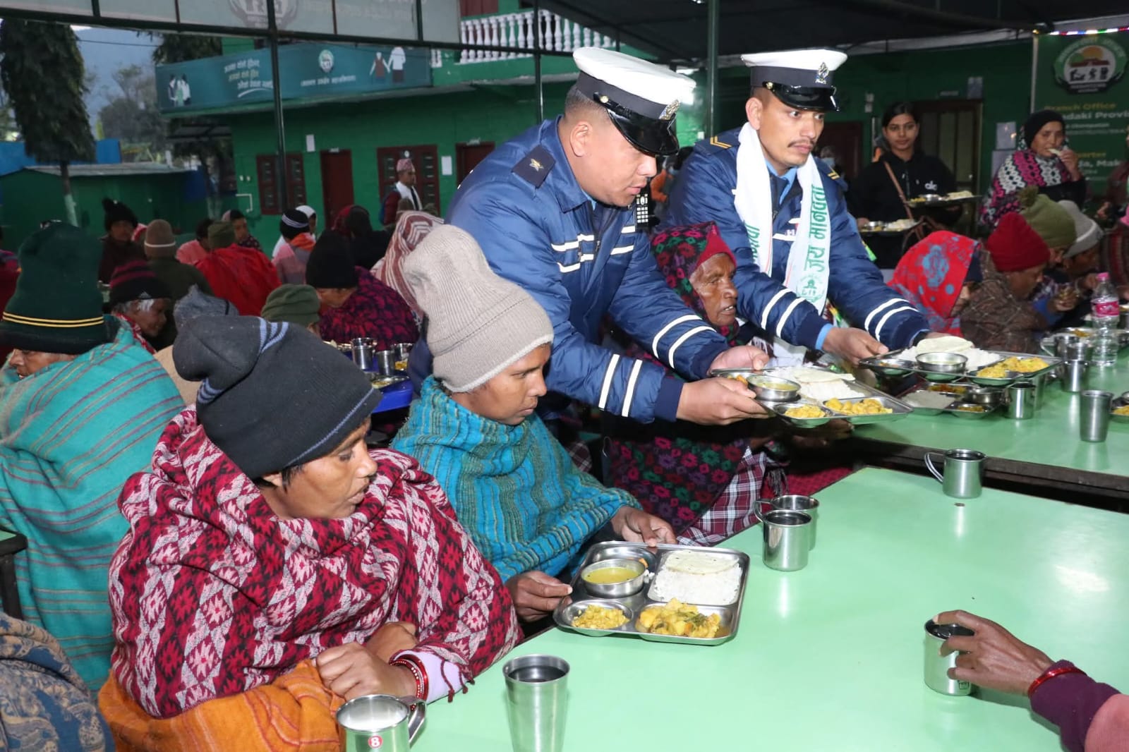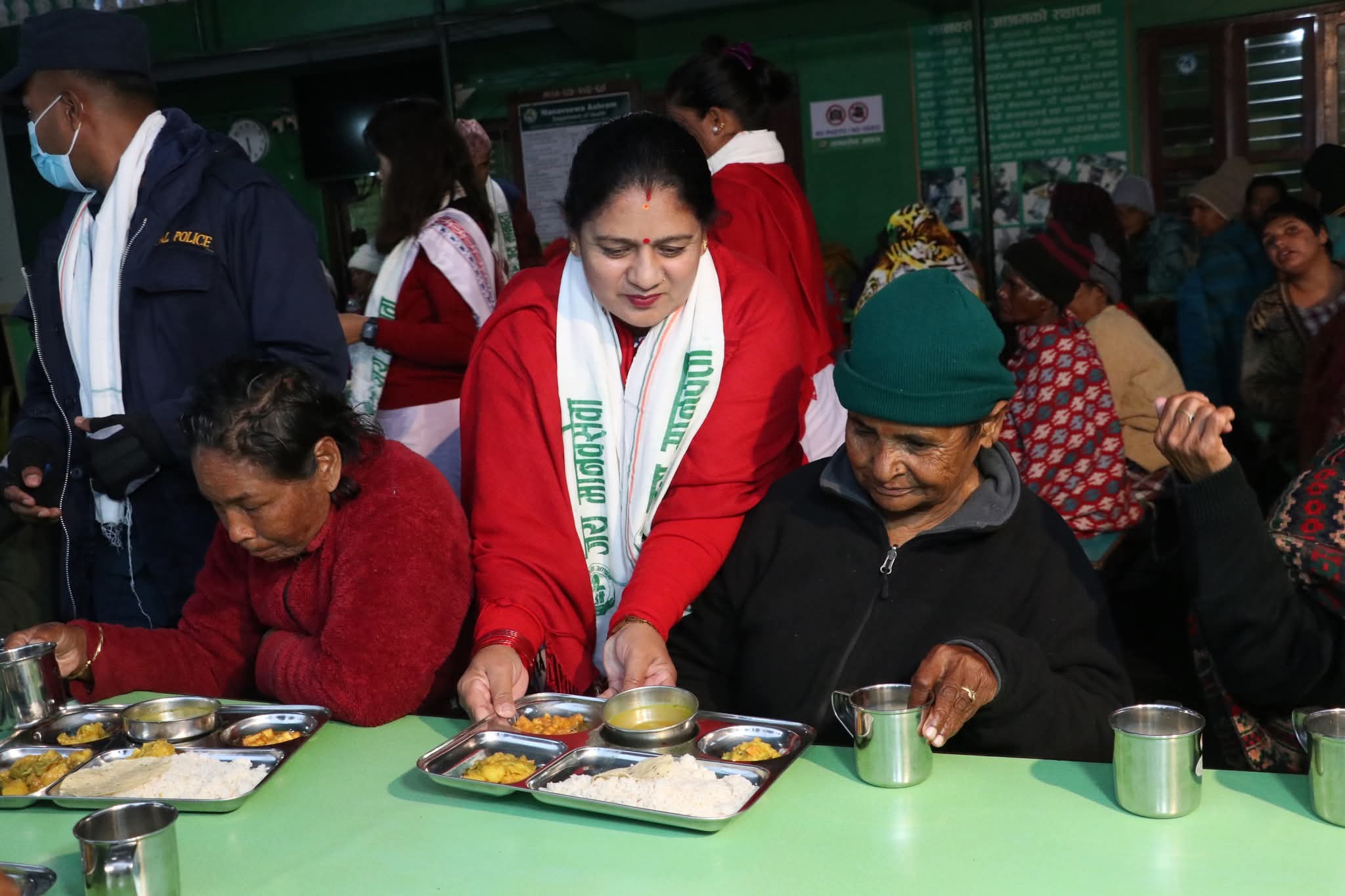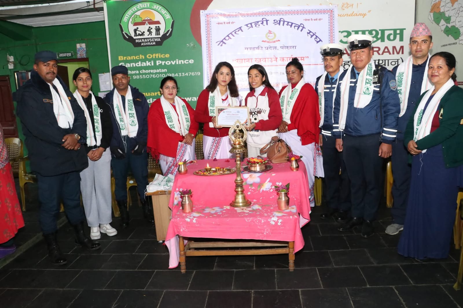 मिति २०८२।०९।२९ गते “सेवा नै मुल धर्म हो” भन्ने पवित्र भावनालाई आत्मसाथ गर्दै नेपाल प्रहरी श्रीमती सघं गण्डकी प्रदेश पोखराको आयोजनामा सघंकी अध्यक्ष श्रीमती प्रिती पाण्डे प्रमुख आतिथ्यतामा सघंका पदाधिकारीहरु तथा प्रहरी कर्मचारीहरुको उपस्थितीमा मानवसेवा आश्रम पोखरा १७ छोरेपाटन कास्कीमा रहनु भएका असहाय, अशक्त वृद्हरु गरी ९० जना लाई सामाजिक सेवाको भावना अनुरुप साँझको बिशेष भोजन प्रदान गरिएको ।